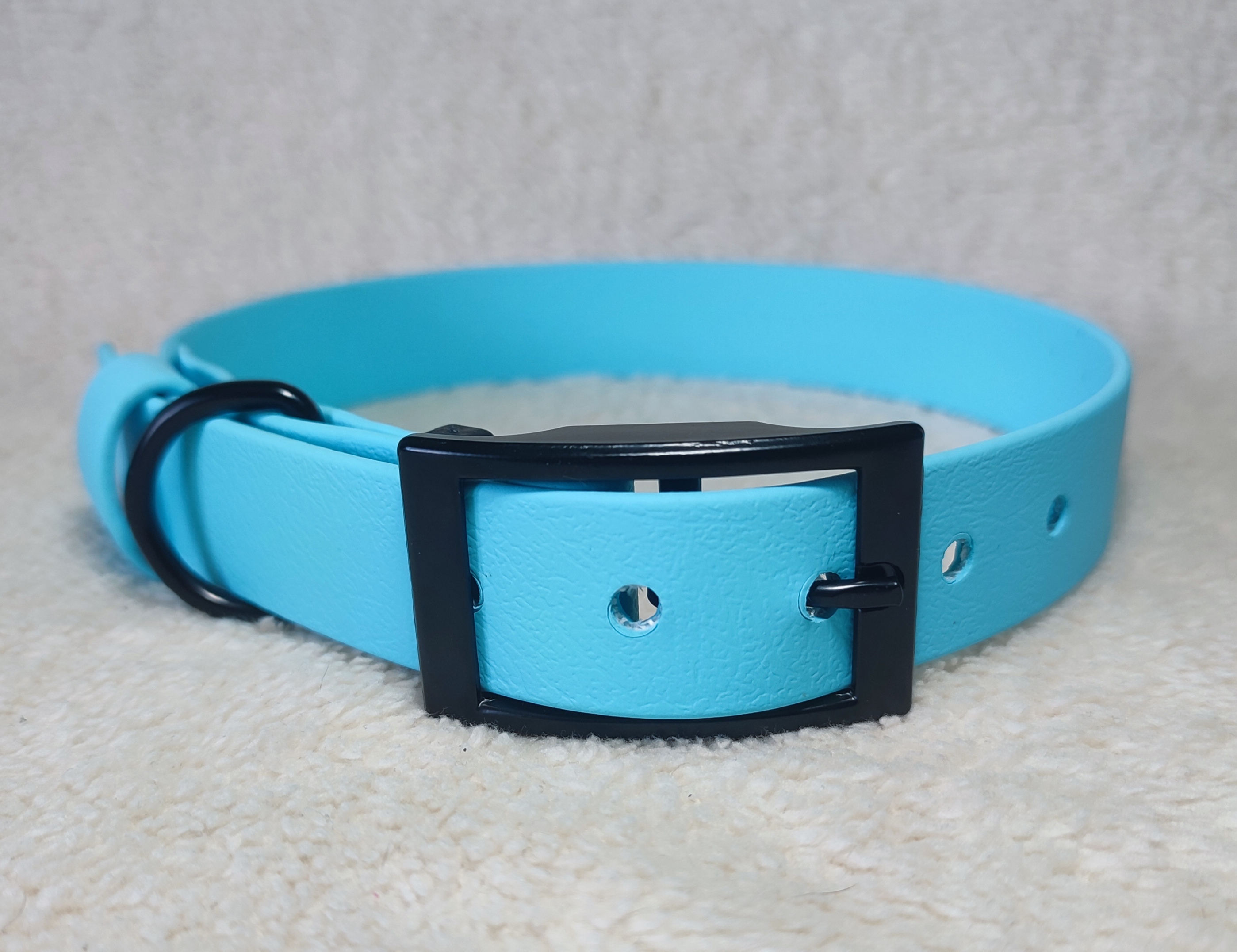 Biothane obojek je v šířce 25mm. Biothane je voděodolné, omyvatelné pod vodou, nevytahuje se a je odolné proti UV záření. Obojek z biothane je i pevný a může ho mít jakékoliv plemeno. Pro opravdu velké a silné psy doporučuji volit šířku 38mm.