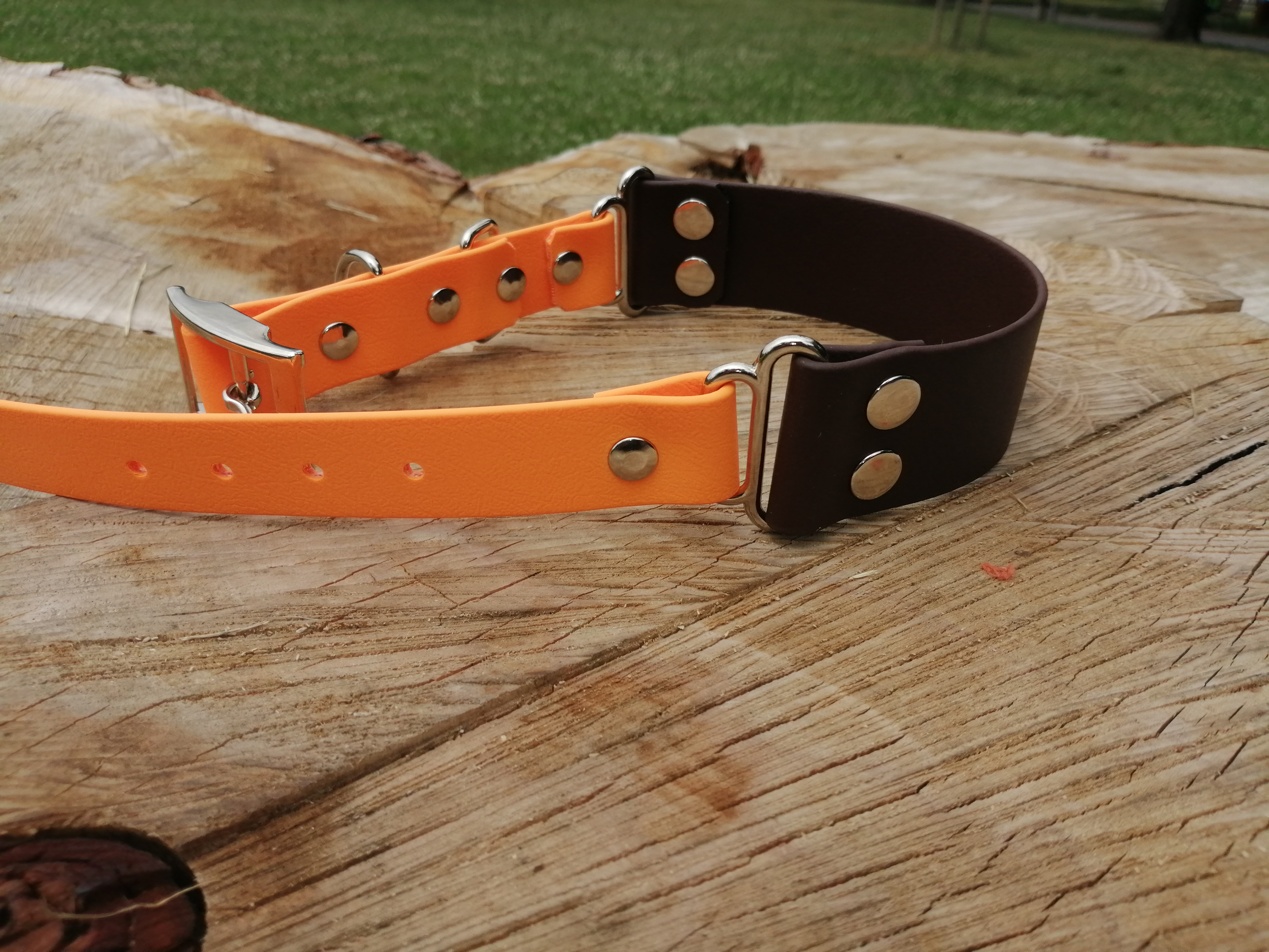 Další varianta, jak kombinovat barvy a šířky. Díky redukci, je možné kombinovat i barvy  " vedle " sebe.  Kombinace šířek 38 a 25mm Díky redukci je to možné a velice oblíbené, protože širší část obojku má pesan pod krkem a netlačí tak, jak úzký obojek. Vhodné i pro větší psy. Aktuální obvod krku, pr... celý popis