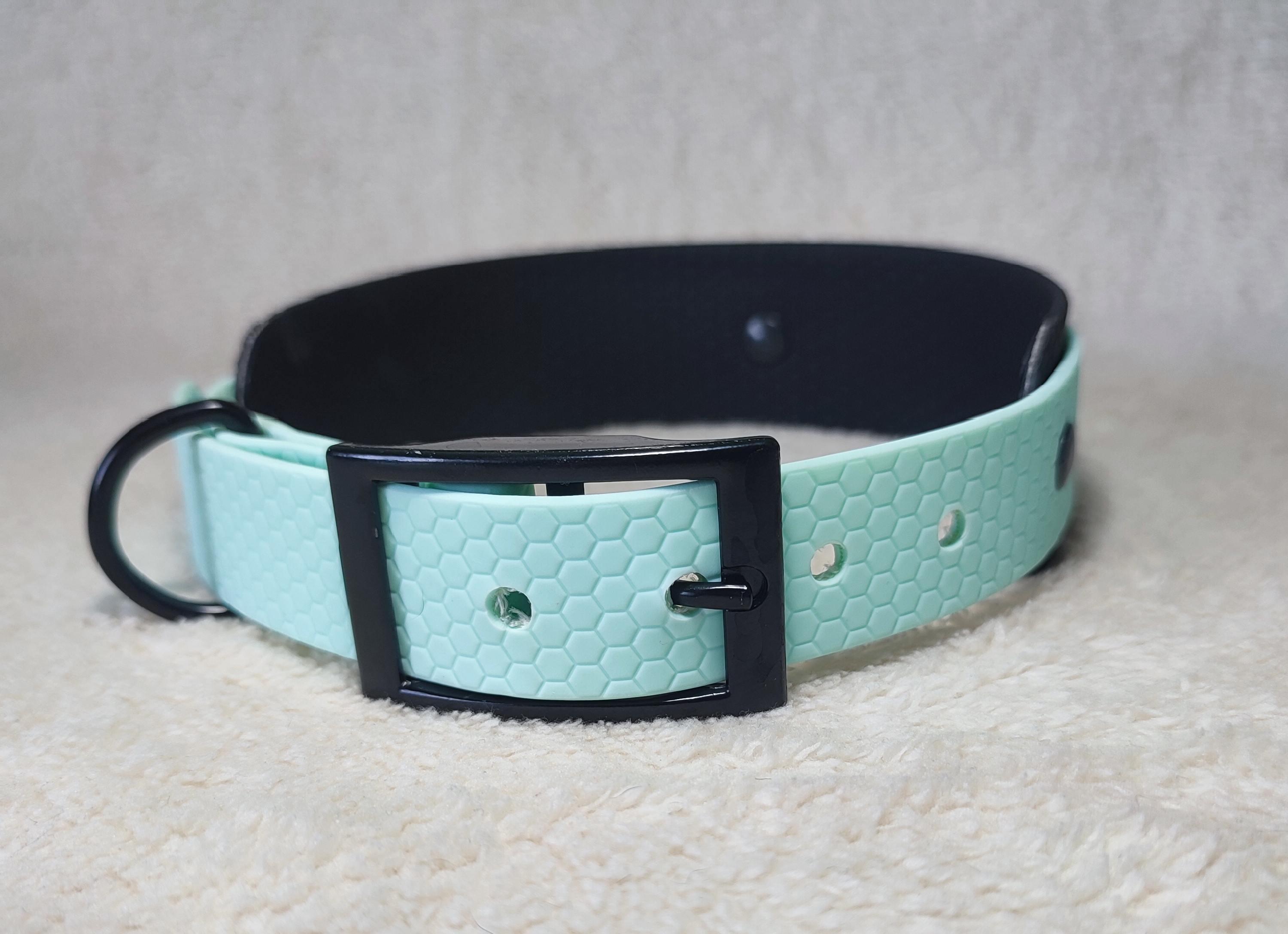 Skladový obojek pro obvod krku 40 - 48cm, v barevném provedení černá a sv.mint. Jiná velikost v nabídce