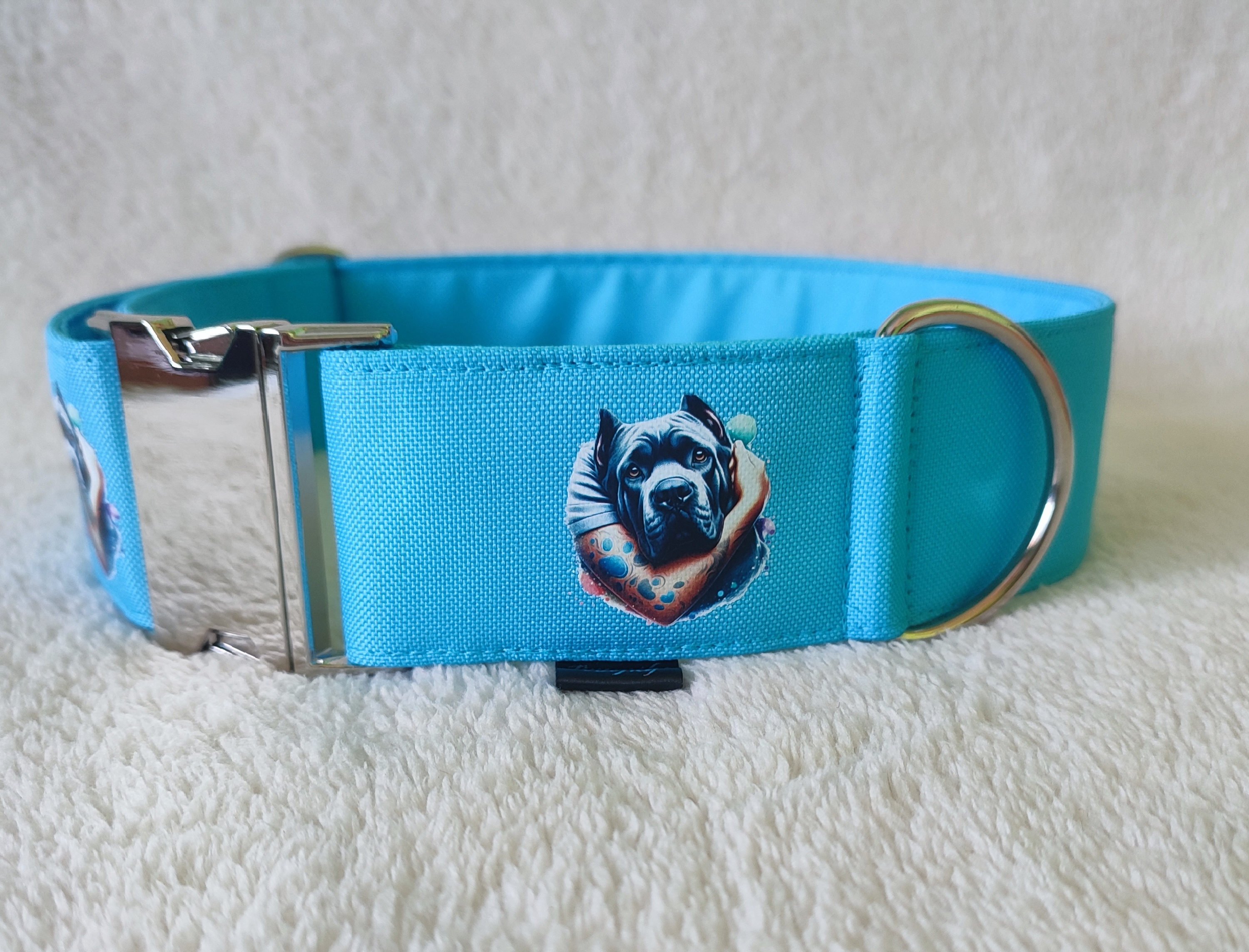 Pro milovníky Cane Corso jsem vyrobila obojek s tiskem jejich plemene. Obojek je v krásné modro - tyrkysové barvě. Ale je možné vybrat i jinou pdkladovou barvu.