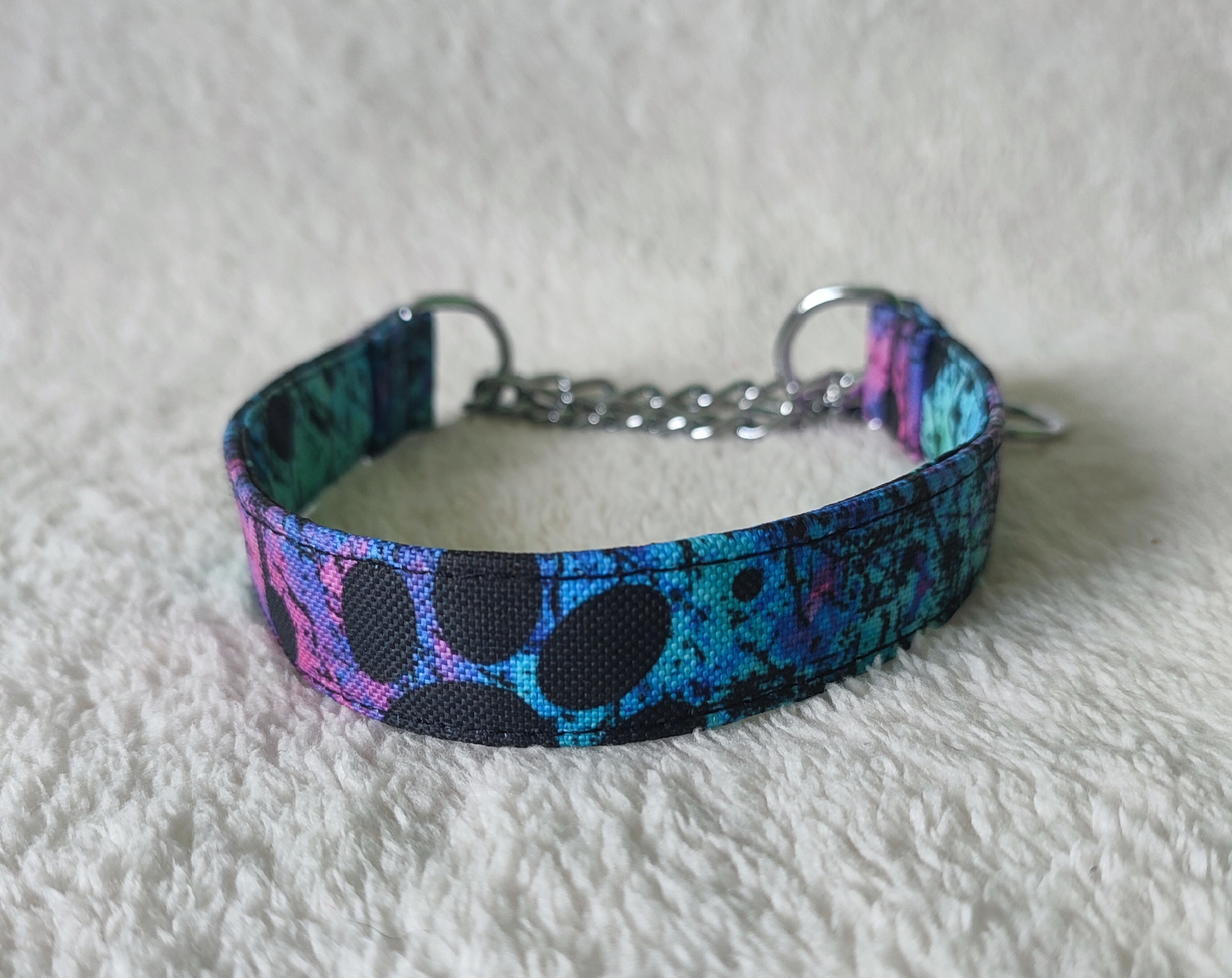 Malinký polostahovací obojek s jemným řetízkem. Obojek je šířka 2cm, řetízek je velmi jemný, stříbrný. Obvod obojku včetně řetízku je 40cm, po stažení 30cm. Je vhodný pro menšího pejska. Měřte obvod hlahy v nejširším místě, pro pohodlné přetažení přes ouška.