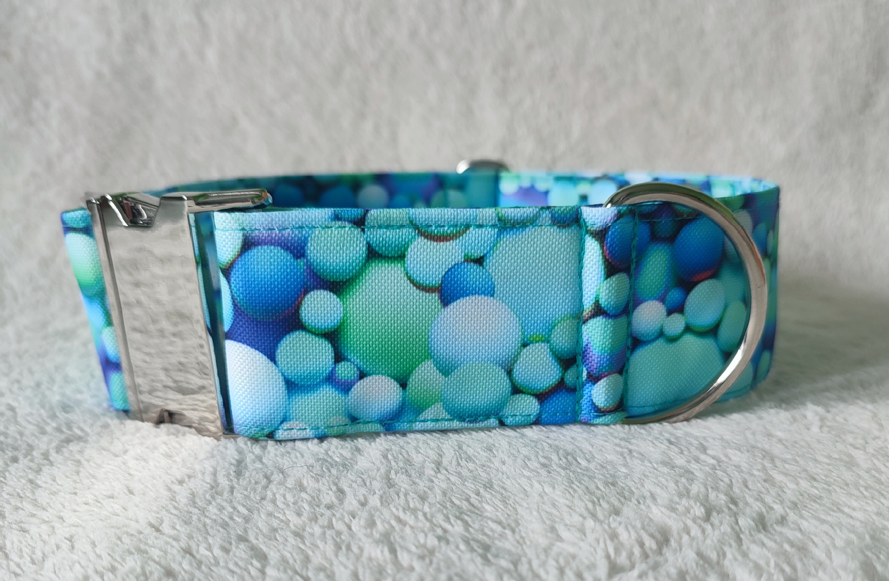 Pro psí kluky je zde široký obojek s veselým vzorem tyrkysových kuliček. Obojek je široký, uvnitř má pevnostní popruh a doplněn je stříbrným kováním. Je vhodný pro všechna plemena. Pro střední plemena je možné vyrobit v šířce 4cm. celý popis