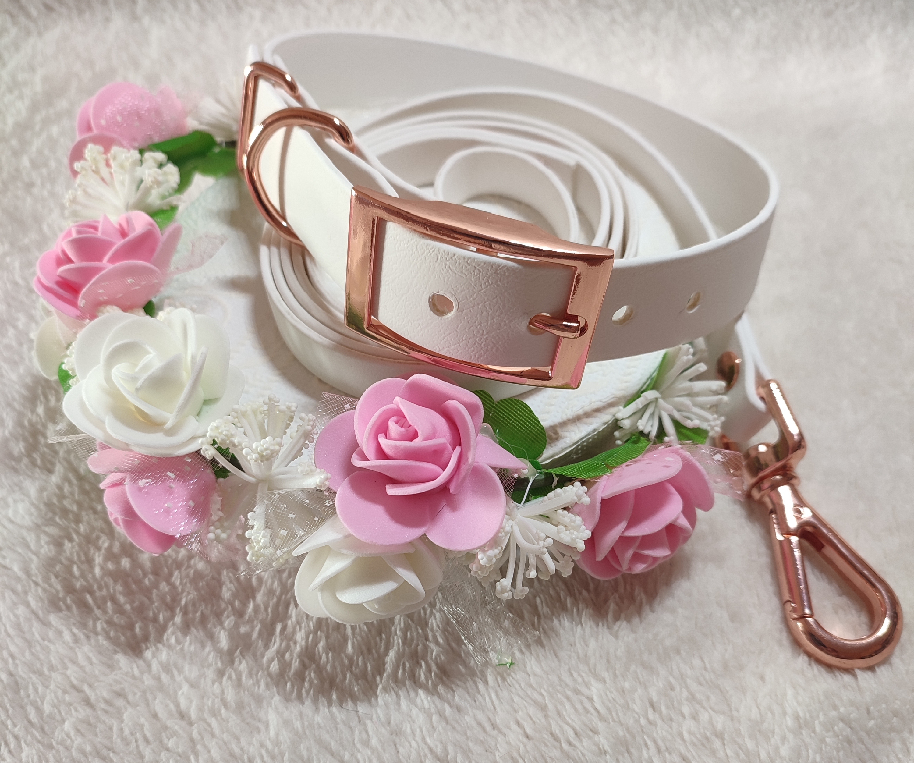 Říká se, že v jednoduchosti je krása a tento bílý biothane set je toho důkazem. Bílou barvu skvěle doplní kování z růžového zlata.