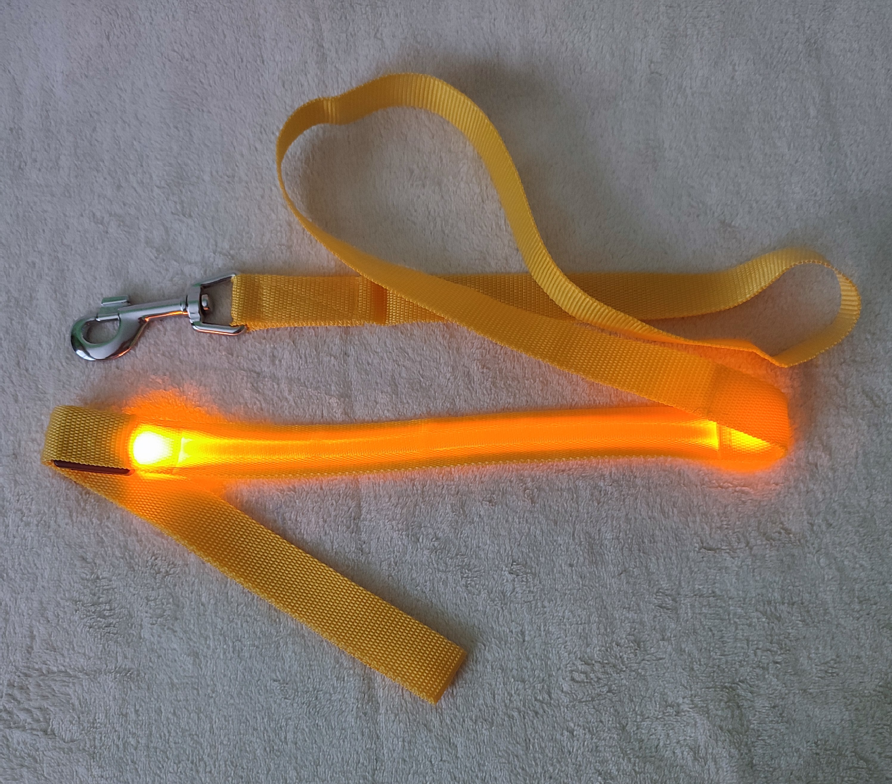 Pro lepší viditelnost a hlavně pro bezpečnost Vaši i Vašeho pejska jsou zde svítící vodítka. Vodítko je popruhové s délkou 160cm.